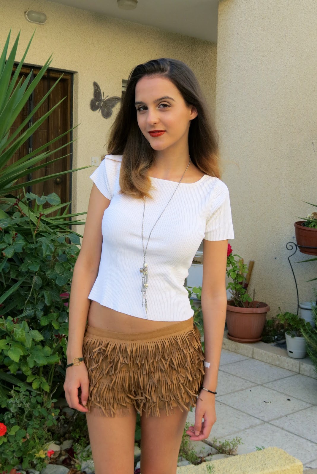 For today's outfit, I was originally going to wear this to Hardwell when he was here to Larnaca. In the end I didn't get to go but thought the outfit definitely had that minimal but cool festival/concert feeling and wanted to share it. I paired my fringe shorts with an adorable open back t-shirt and my espadrilles. Simple but very stylish!